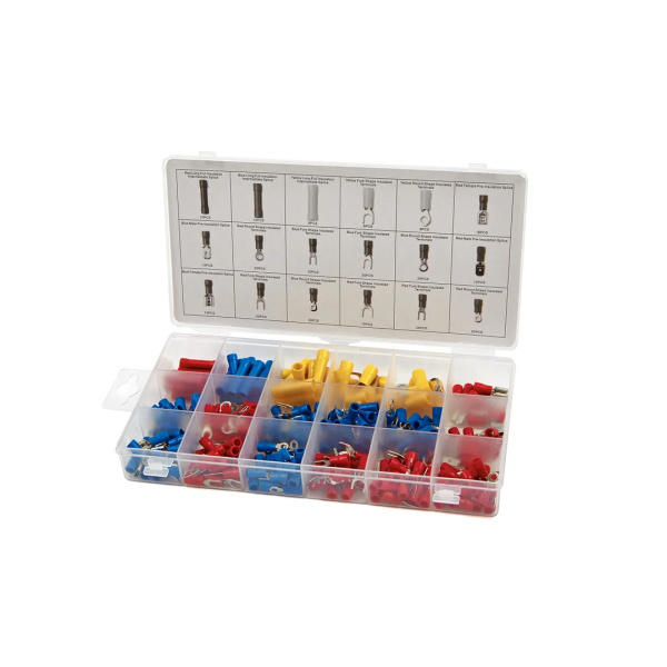 - Een 270-delig assortiment met verschillende kabelschoenen.