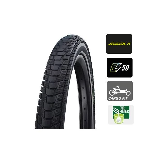 Dankzij zijn extreem stabiele dubbele karkas, wordt de Schwalbe Pick-Up een echte pakezel en biedt tegelijkertijd een uitstekende lekbescherming. Daarbij zorgt het Addix E compound voor buitengewoon goede rijprestaties en grip, zelfs in de 20” uitvoering.
